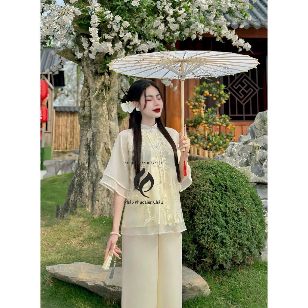 – Chất liệu: set áo quần chất lụa ngọc trai cao cấp, lụa voan 2 lớp cao cấp, hoạ tiết thêu nổi thủ công