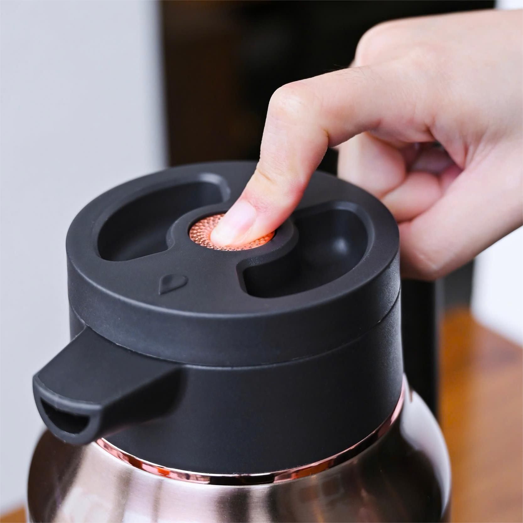 An toàn và vệ sinh: Sau khi rót, chỉ cần nhấn lại, nắp/van sẽ đóng kín, giữ nhiệt hiệu quả và ngăn chặn bụi bẩn, vi khuẩn xâm nhập.