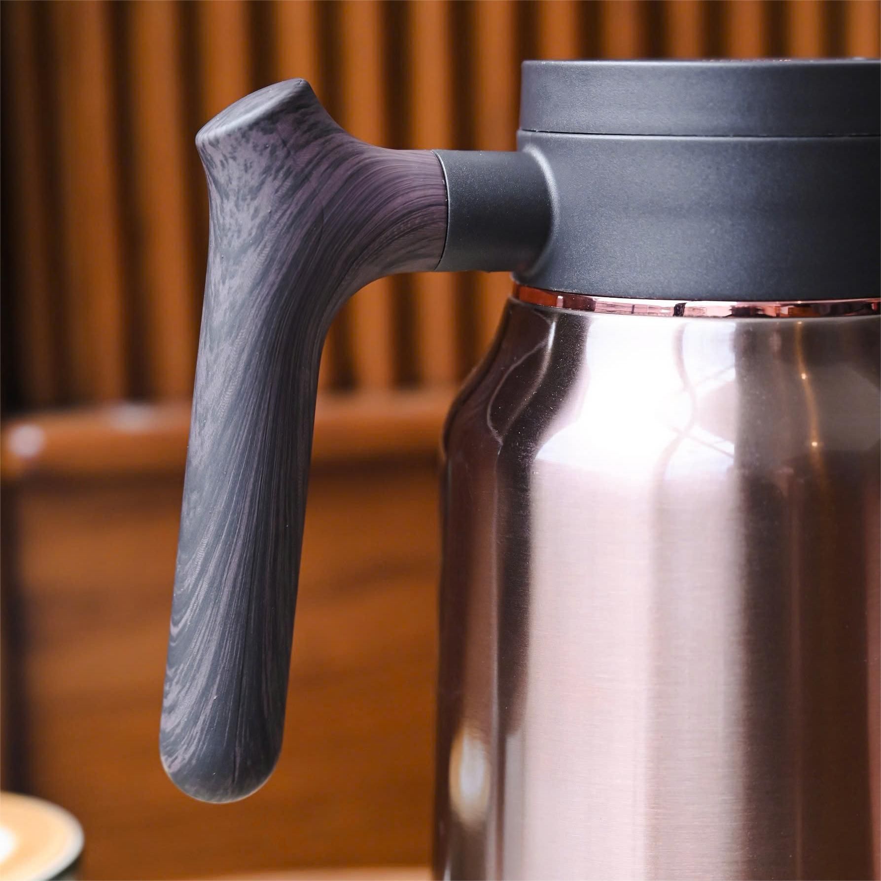 Thiết kế công thái học của tay cầm được nghiên cứu tỉ mỉ, ôm sát đường cong tự nhiên của bàn tay, mang lại cảm giác vừa vặn và dễ chịu, giúp giảm áp lực lên cổ tay ngay cả khi bình chứa đầy thức uống. Bề mặt được chế tác từ vật liệu chống trượt chuyên biệt tăng cường độ bám và ngăn ngừa tình trạng trượt tay, đặc biệt khi di chuyển hay tay ẩm ướt.