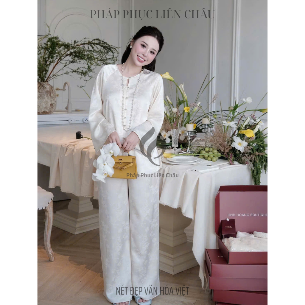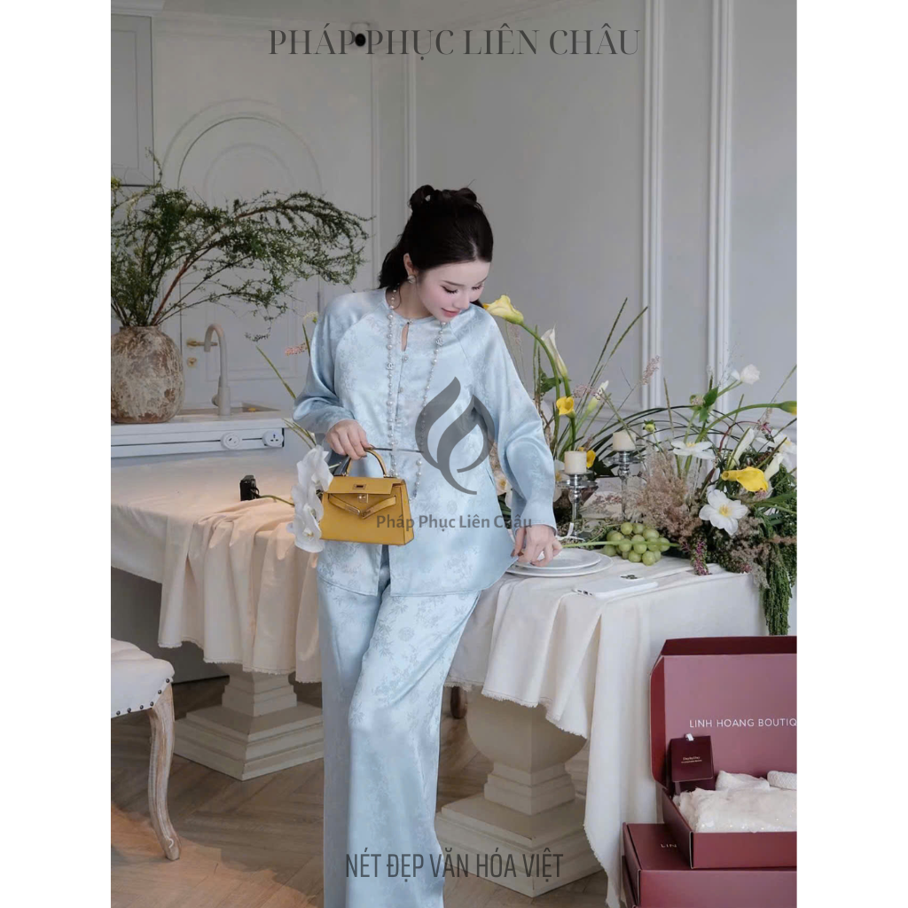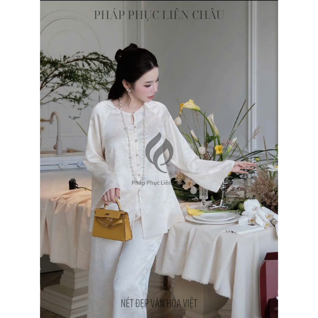 Mẫu mới cực duyên, chất gấm thanh trúc đứng form – điểm cúc ngọc tinh tế, mặc lên sang mà vẫn nhẹ nhàng chuẩn chất pháp phục