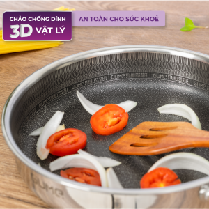 – Chảo chống dính vật lý 3D không sử dụng bất kỳ lớp sơn chống dính hóa học nào, đảm bảo an toàn cho sức khỏe người sử dụng. Độ bền cực cao, không bao giờ bong tróc làm mất hiệu ứng chống dính.