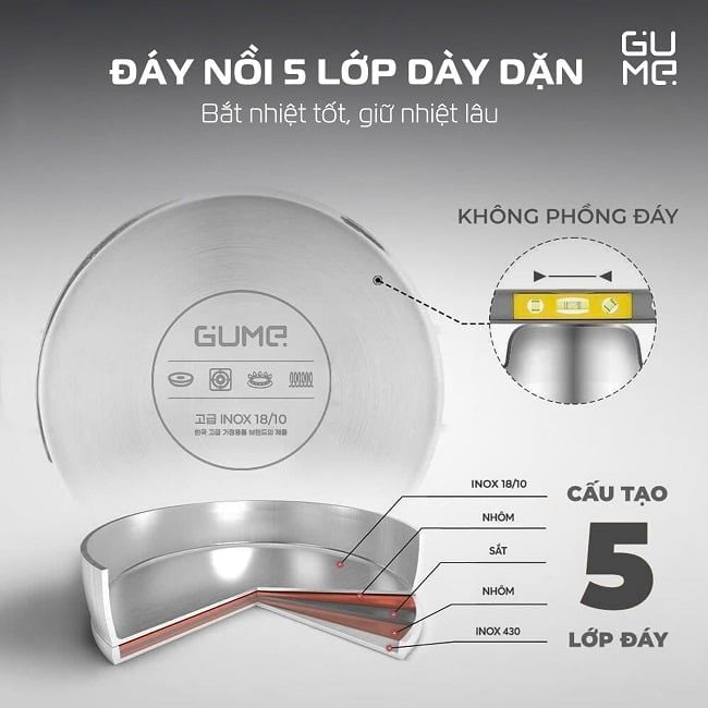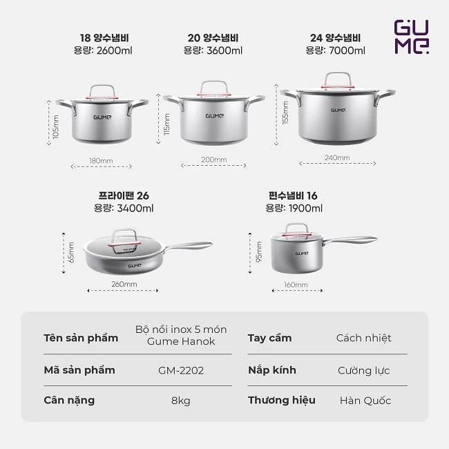 Bộ nồi inox 5 món Hanok GM 2202 Cao Cấp Gume Korea