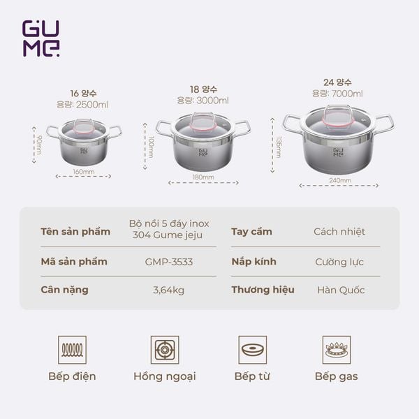 Bộ Nồi Inox JeJu Gume Korea 3pcs Usp Gmp 3533