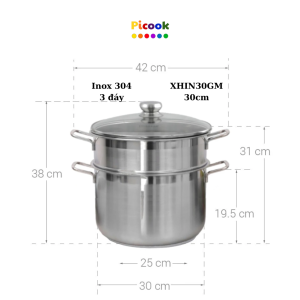 – Tên sản phẩm: Bộ Nồi Xửng/Hấp Inox 304, 3 Đáy, Nắp Kính, Giá Khuyến Mãi Sâu, Dùng Bếp Từ, 30cm, Hãng Picook XHIN30GM