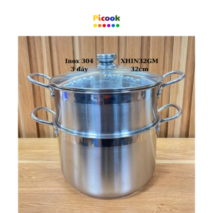 Bộ Nồi Xửng Hấp Inox 304, 3 Đáy, Nắp Kính, Giá Khuyến Mãi Sâu, Dùng Bếp Từ, 32cm, Hãng Picook XHIN32GM