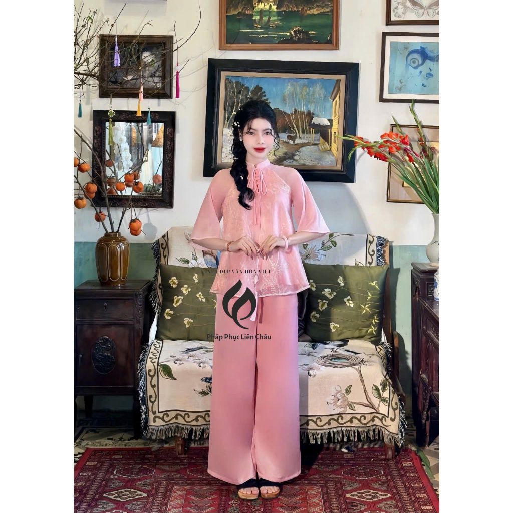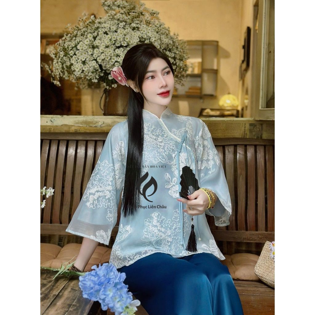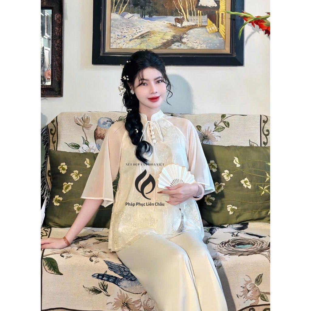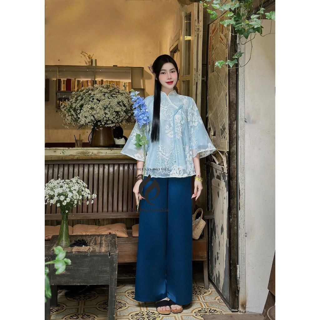 ➤ Áo lam cổ 2 phân thêu hoa cách tân, tay lỡ nữ tính thanh lịch, nhẹ nhàng
