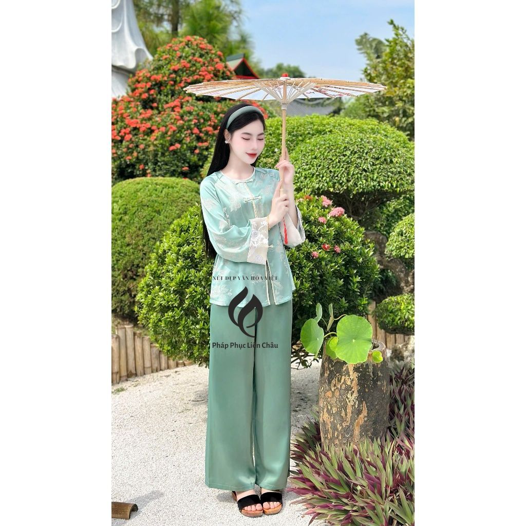 Bộ Pháp phục, đồ lam TỐ UYÊN chất liệu lụa gấm mềm mại, phối tay lạ mắt, màu sắc xuân xinh yêu