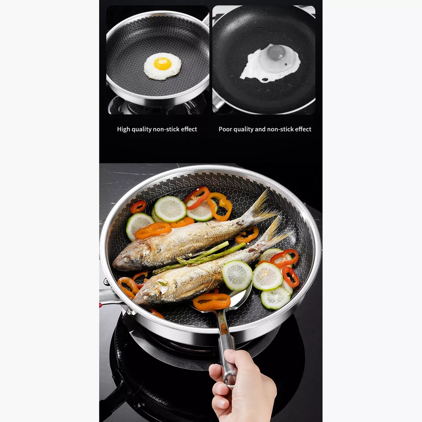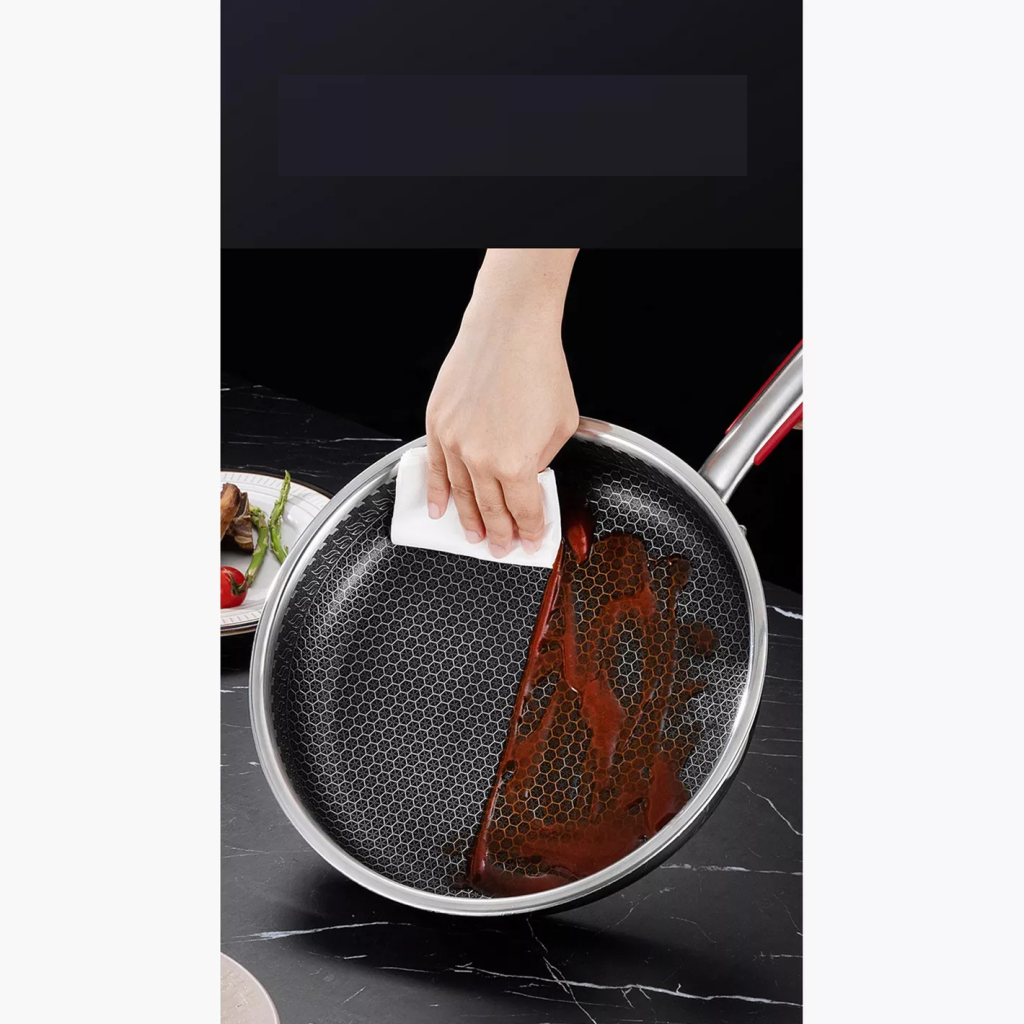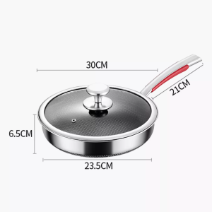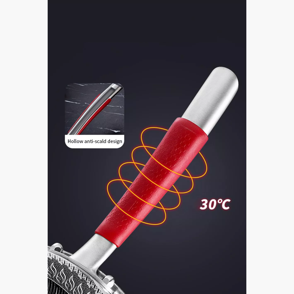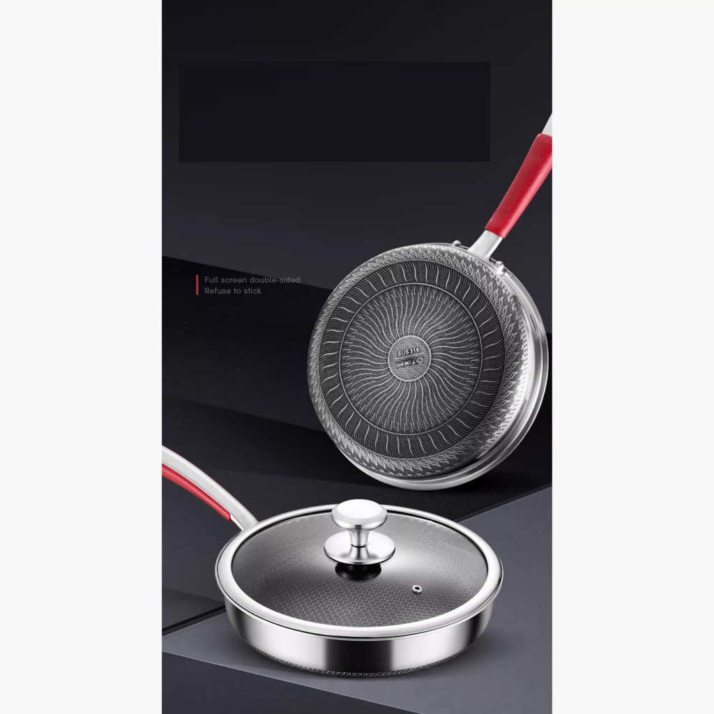Chảo Chống Dính Lưới Inox 316 Siêu Bền, Dùng Mọi Bếp, Tay Đỏ Cách Nhiệt, Nắp Kính, Giá Tốt 28cm CDL316VK28