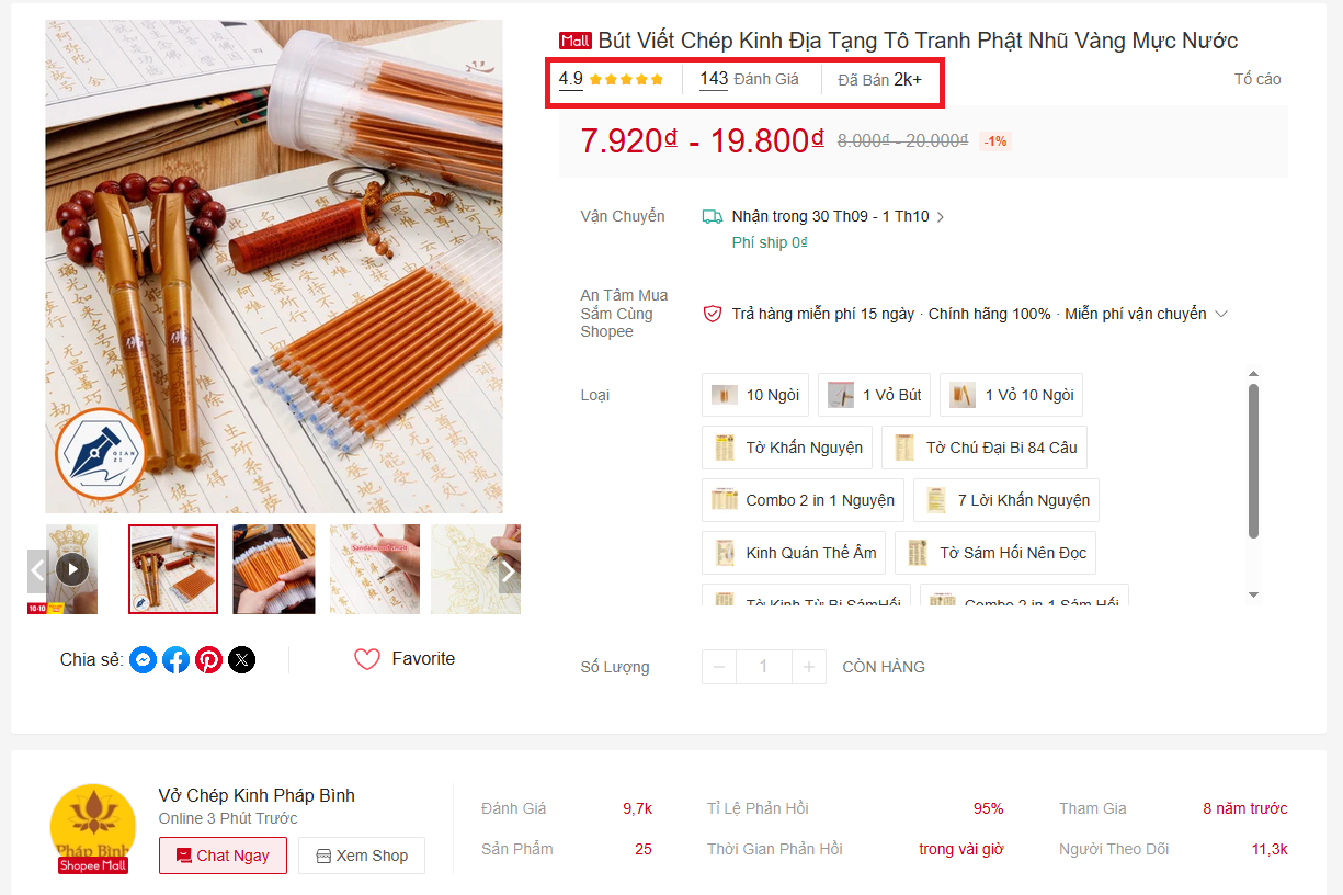 Bút chép Kinh nhũ vàng giúp luyện chữ