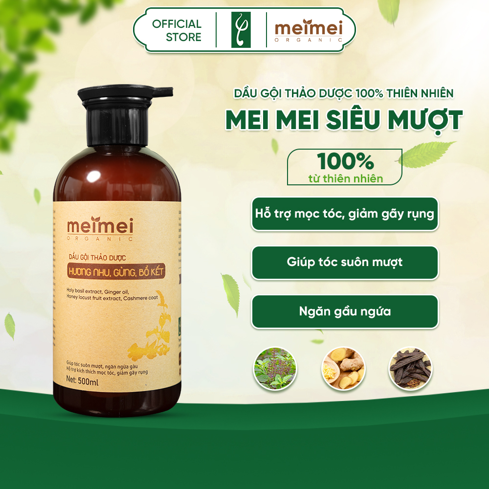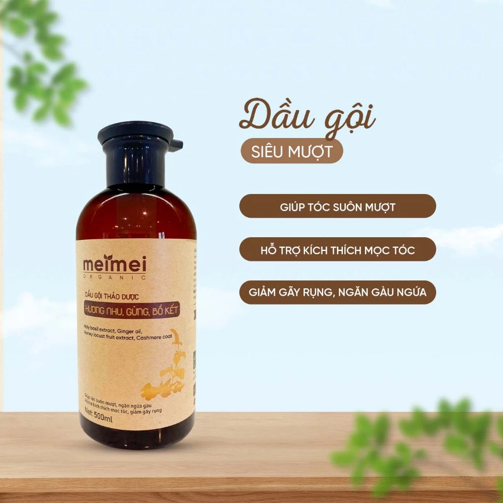 Dầu Gội Thảo Dược Liệu Hương Nhu, Gừng, Bồ Kết Giảm Gàu, Ngứa, Rụng, Bết Chống Oxy Hóa MeiMei 500ml