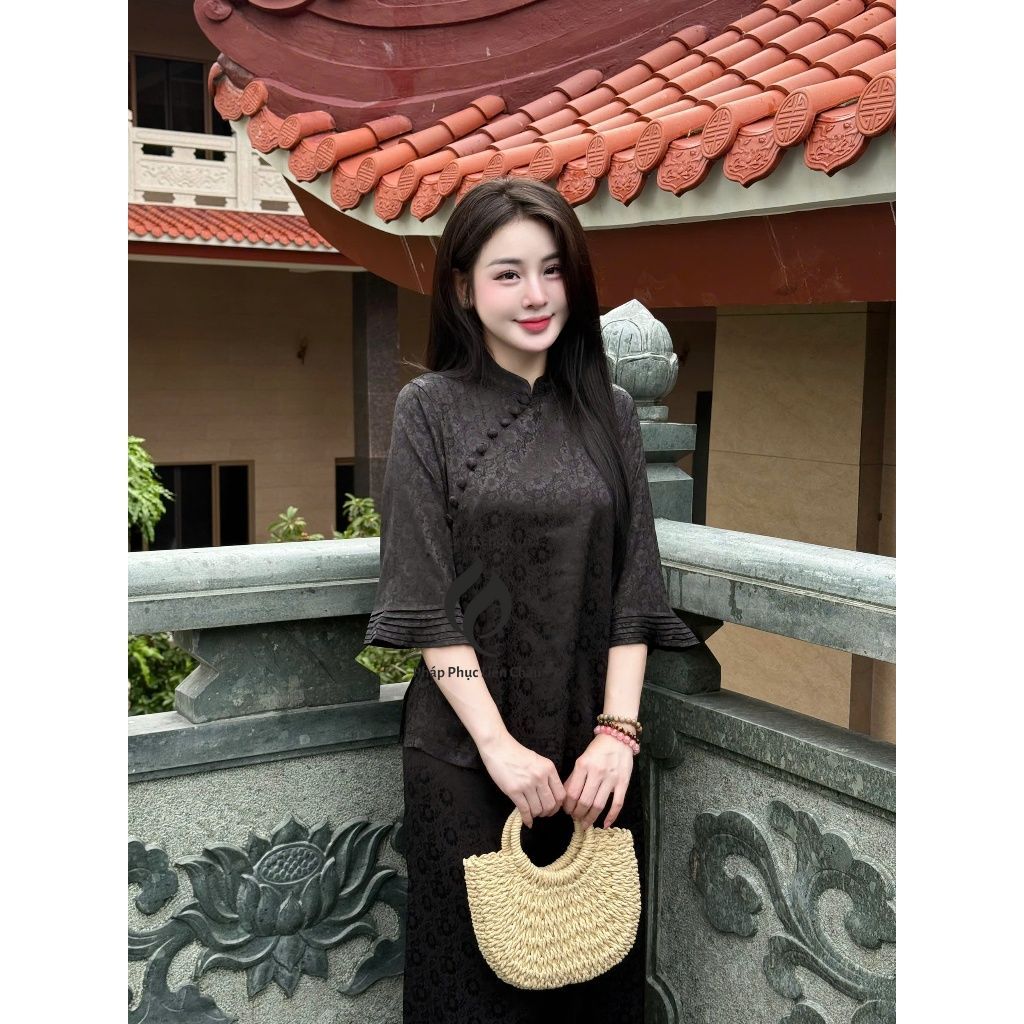 Đồ lam đi lễ phối tay hoa cúc TINH NHI sang trọng và thanh lịch PP342