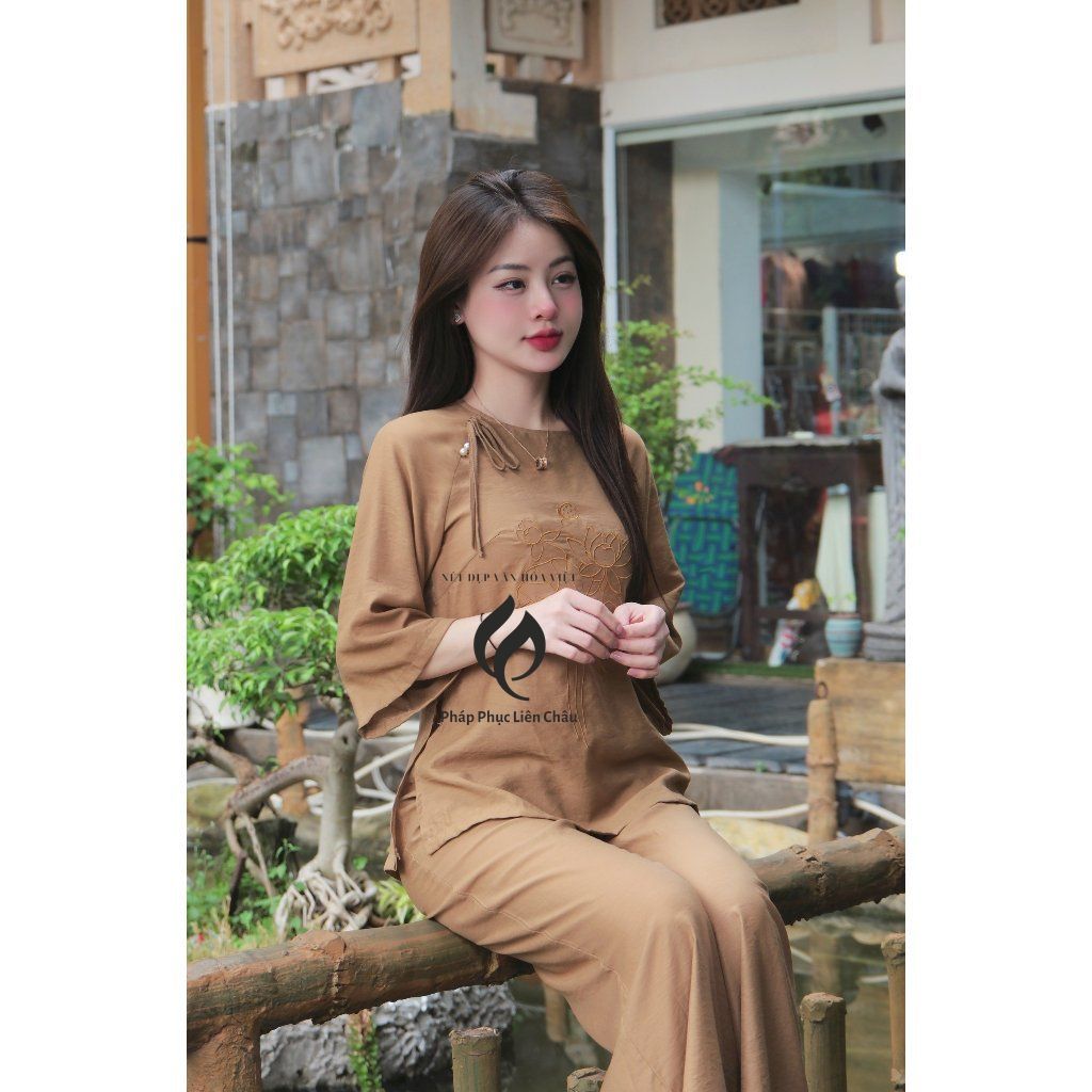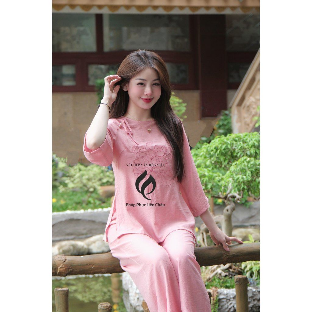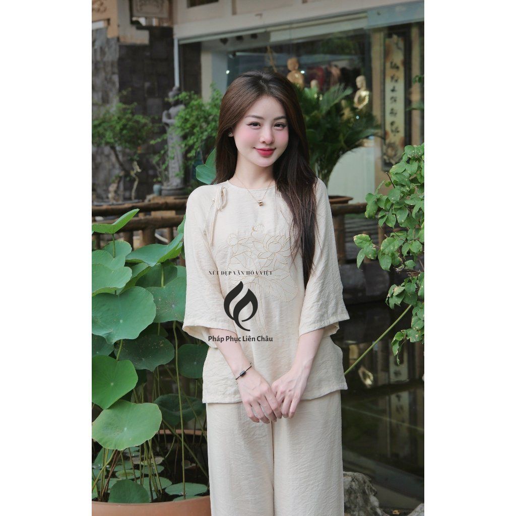 Đồ lam đi lễ thêu hoa sen TINH NHI thanh lịch và duyên dáng PP214