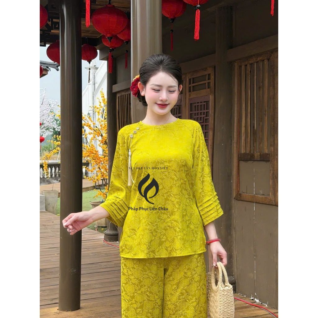 Đồ lam lụa gấm tay xêp li kèm charm TINH NHI duyên dáng và thanh lịch PP403