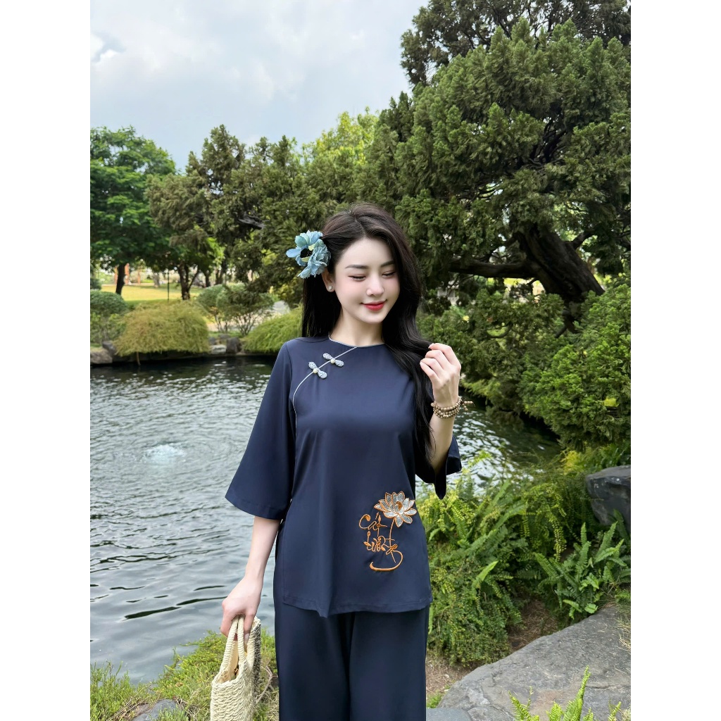Đồ lam thêu cát tường TINH NHI thanh lịch và tôn dáng PP310