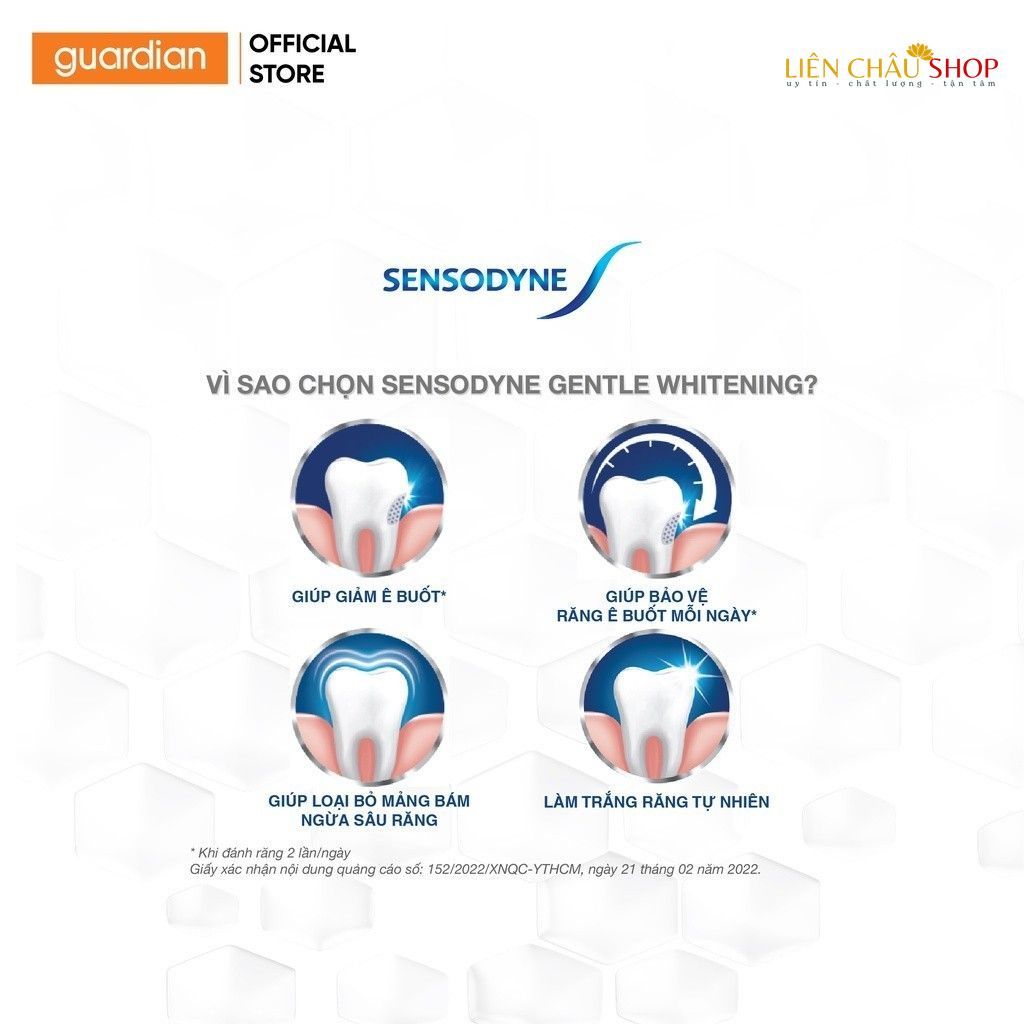 Kem đánh răng Sensodyne Trắng sáng giúp làm trắng răng tự nhiên, loại bỏ mảng bám, nhẹ nhàng loại bỏ vết ố, làm trắng răng tự nhiên, có chứa fluoride ngừa sâu răng hiệu quả.