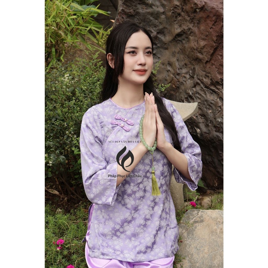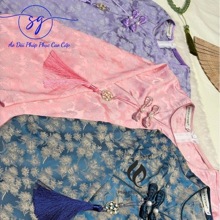 – Áo đi chùa lụa gấm cao cấp dáng ôm gọn người. Vải lụa gấm vân hoa luôn là điểm nhấn tinh tế nhẹ nhàng. Màu sắc tươi mới nhẹ nhàng. Phối màu áo quần phù hợp chắc chắn sẽ làm vừa lòng cả những khách hàng khó tính nhất.