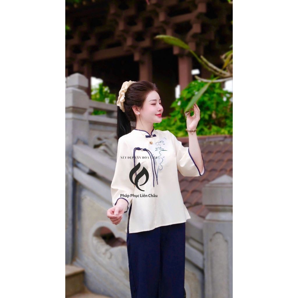 UYỂN NHI – Set áo dài nữ cách tân chất vải tằm cao cấp 2 màu siêu hot, form suông sang trọng – Áo Dài Pháp Phục Sài Gòn.