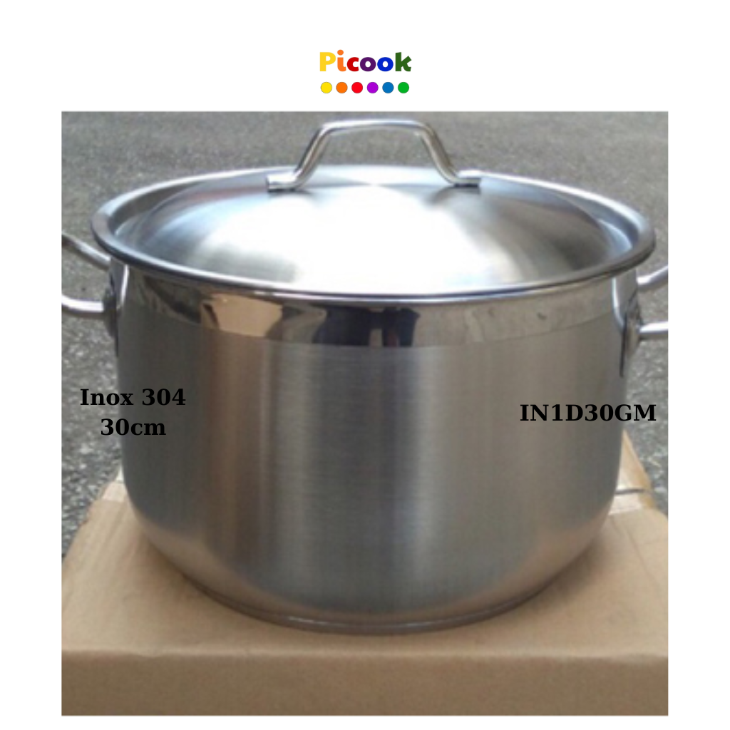 Nồi vung Inox 304, 1 Đáy, Dùng Cho Bếp Từ Giá Khuyến Mãi Sâu, 30cm, Hãng Picook IN1D30GM vung inox đáy 1 lớp là sự lựa chọn lý tưởng cho gia đình, được làm từ inox 304 cao cấp, bền, an toàn và dễ vệ sinh. Với thiết kế đáy 1 lớp nồi dẫn nhiệt nhanh, tiết kiệm nhiên liệu và giúp món ăn chín đều. Vung inox kín hơi giữ nhiệt lâu, đảm bảo món ăn luôn nóng hổi. Quai cầm inox chắc chắn, dễ di chuyển và chống nóng hiệu quả.