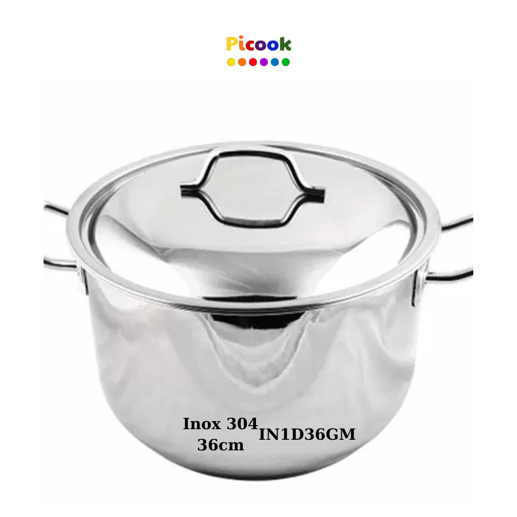 Nồi vung Inox 304, 1 Đáy, Dùng Cho Bếp Từ Giá Khuyến Mãi Sâu, 36cm, Hãng Picook IN1D36GM vung inox đáy 1 lớp là sự lựa chọn lý tưởng cho gia đình, được làm từ inox 304 cao cấp, bền, an toàn và dễ vệ sinh. Với thiết kế đáy 1 lớp nồi dẫn nhiệt nhanh, tiết kiệm nhiên liệu và giúp món ăn chín đều. Vung inox kín hơi giữ nhiệt lâu, đảm bảo món ăn luôn nóng hổi. Quai cầm inox chắc chắn, dễ di chuyển và chống nóng hiệu quả.