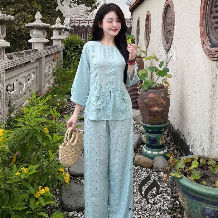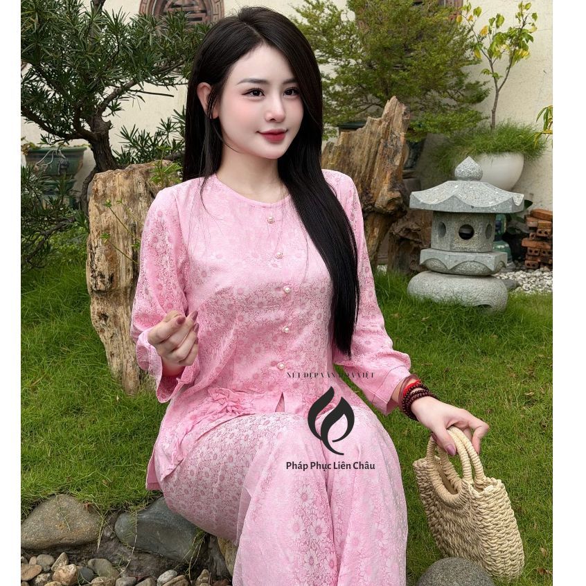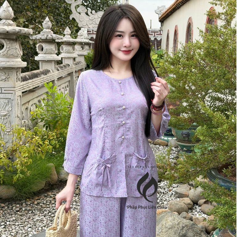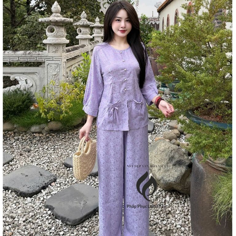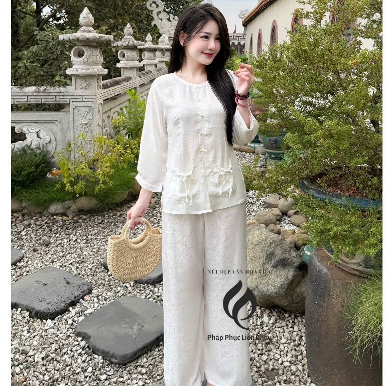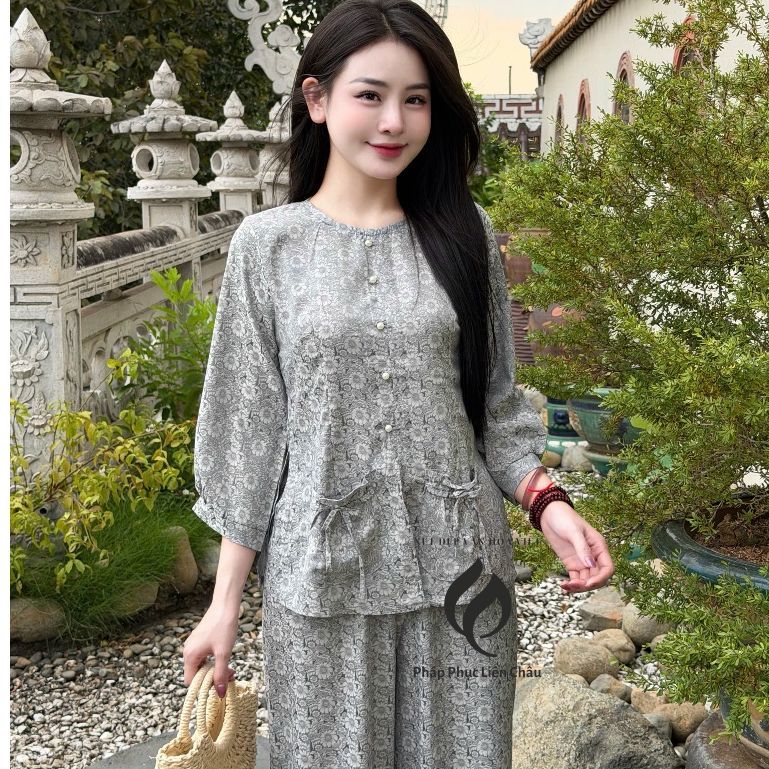 Pháp Phục Bộ bà ba Như Ý, chất vải lụa gấm 2 da vẫn nhoa nhí, tay lỡ cách điệu, màu sắc nhã nhặn – Pháp Phục Liên Châu – Silk