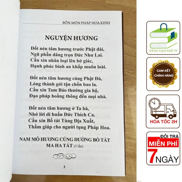 Bổn môn Pháp Hoa tuy chỉ có bảy phẩm, nhưng đó là thoại đầu mà tôi thường suy tư, ứng dụng thế nào để mở rộng tương ưng được với bảy quyển của kinh Pháp Hoa và mở rộng hơn nữa sao cho thâm nhập Pháp giới, nghe được hai mươi muôn ức bài kệ Pháp Hoa của Phật Oai Âm Vương.