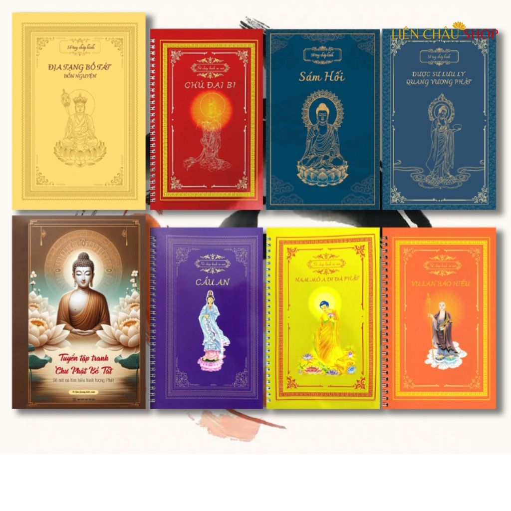 Sách – Combo 4 Vở chép kinh, Sổ chép kinh in mờ cao cấp Kinh Địa Tạng, Chú Đại Bi, Kinh Dược Sư, Cầu An Tím – Liên Châu Shop