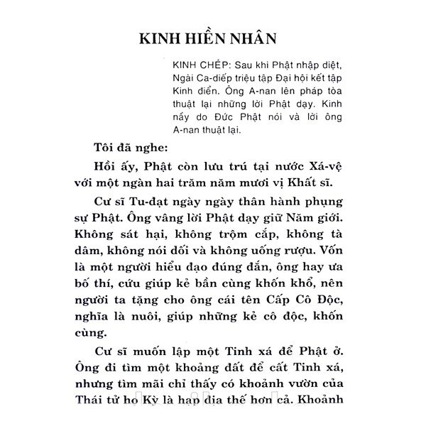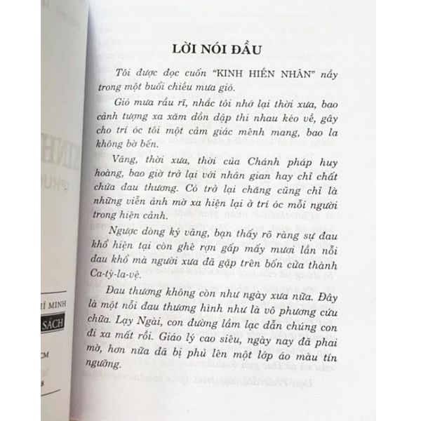 Tôi được đọc cuốn “Kinh Hiền Nhân” nầy trong một buổi chiều mưa gió. Gió mưa rầu rĩ nhắc tôi nhớ lại thời xưa. Bao cảnh tượng xa xăm dồn dập thi nhau kéo về, gây cho trí óc một cảm giác mênh mang, bao la không bờ bến. Vâng, thời xưa, thời của Chánh pháp, huy hoàng còn bao giờ trở lại với nhân-gian chất chứa đau thương. Có trở lại chăng cũng chỉ là những viễn ảnh mờ xa hiện lại ở trí óc mỗi người trong hiện cảnh. Máu chảy nhiều quá, hơi nồng nực bốc lên; sát khí như mây mù phủ kín núi đồi một chiều mùa hạ. Nồng nực quá, bực bội, ghê rợn quá, bạn cùng tôi đều trông mong một làn gió dịu thổi về từ quá khứ xa xăm.