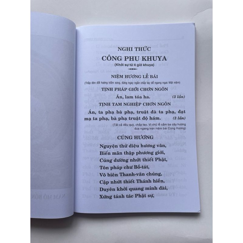 – Chí tâm đảnh lễ: Nam mô Tận hư không, biến pháp giới, quá, hiện, vị lai thập phương chư Phật, tôn Pháp, Hiền Thánh Tăng, thường trụ Tam Bảo. (1 lạy)