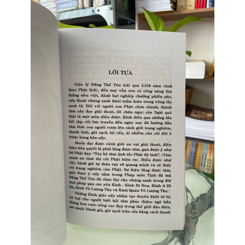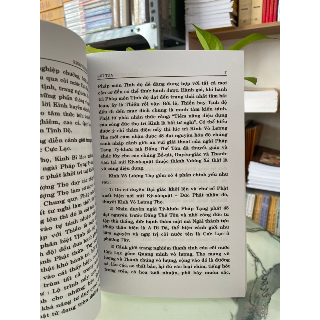Do cơ duyên Đại giác khởi lên và chư cổ Phật xuất hiện nơi núi Kỳ-xà-quật – Đức Phật nhân đó, thuyết Kinh Vô Lượng Thọ. Nhân duyên ngài Tỷ khưu Pháp Tạng phát 48 đại nguyện trước Đấng Thế Tôn và nhờ công đức tu tập thù thắng, đức hạnh thâm mật mà Ngài thành tựu Pháp thân hiệu là A Di Đà, thể hiện cảnh giới như tâm nguyện và ngự trị cõi nước tên là Cực Lạc ở phương Tây. Cảnh giới trang nghiêm thanh tịnh của cõi nước Cực Lạc gồm: Quang minh vô lượng, Thọ mạng vô lượng và Thánh chúng vô lượng, cộng vào đó là đường sá, lầu các, ao thất bảo, lại đủ các loại chim, tiếng hót trong trẻo, cỏ hoa tươi nhuận, phô bày muôn sắc,phảng phất hương thơm. Lại có, từ những cánh sen hồng tự nhiên thai sanh Thánh chúng, diện mạo sáng ngời, đoan chánh mà nhật nguyệt không thể sánh bằng. Lại có, y phục tốt, thức ăn sang tự nhiên hóa thành do tâm niệm. Tất cả đều sang trọng quý báu vô cùng. Những duyên khởi mầu nhiệm của trí tuộ trong cõi nước Cực Lạc và công đức tu tập tinh tấn đem lại lợi ích giải thoát tuyệt vời cho hành giả chơn chánh nhuần nhuyễn trì tụng, quán xét minh mẫn và tâm không còn ô nhiễm.Tôi nhận thấy, Kinh Vô Lượng Thọ có nhiều nghĩa lý thâm diệu, triển khai trí tuệ quang minh và công đức trì tụng Kinh nầy thật là diệu dụng, xuất phát từ bản tâm thanh tịnh. Cũng bởi giá trị cao thâm đó, tôi đã tha thiết trong việc lưu truyền nên thành tâm phiên dịch bản Kinh nầy từ Hán văn của ngài Khang Tăng Khải đời Tào Ngụy ra Việt văn để quý Phật tử thường tụng hàng ngày hoặc trong các khóa lễ cầu siêu. Dịch Kinh nầy, chúng tôi chỉ có một tâm nguyện mong mọi người dứt bỏ tà kiến, mê chấp xem các pháp như huyễn như hóa, đồng thời cùng nhau tinh tân thực hành thiện pháp ngõ hầu đem lại lợi lạc an vui giải thoát cho kẻ còn, người mất.
