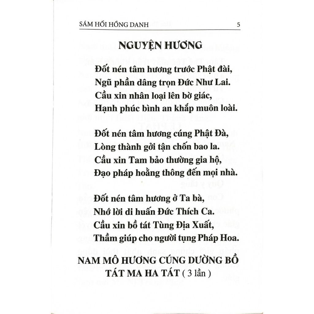 Nghi Thức Sám Hối Sáu Căn Và Hồng Danh gồm 3 phần: phần dẫn nhập, phần chánh Kinh, phần sám nguyện và hồi hướng.