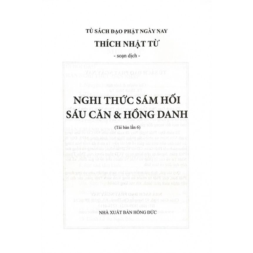 Nghi Thức Sám Hối Sáu Căn Và Hồng Danh gồm 3 phần: phần dẫn nhập, phần chánh Kinh, phần sám nguyện và hồi hướng.