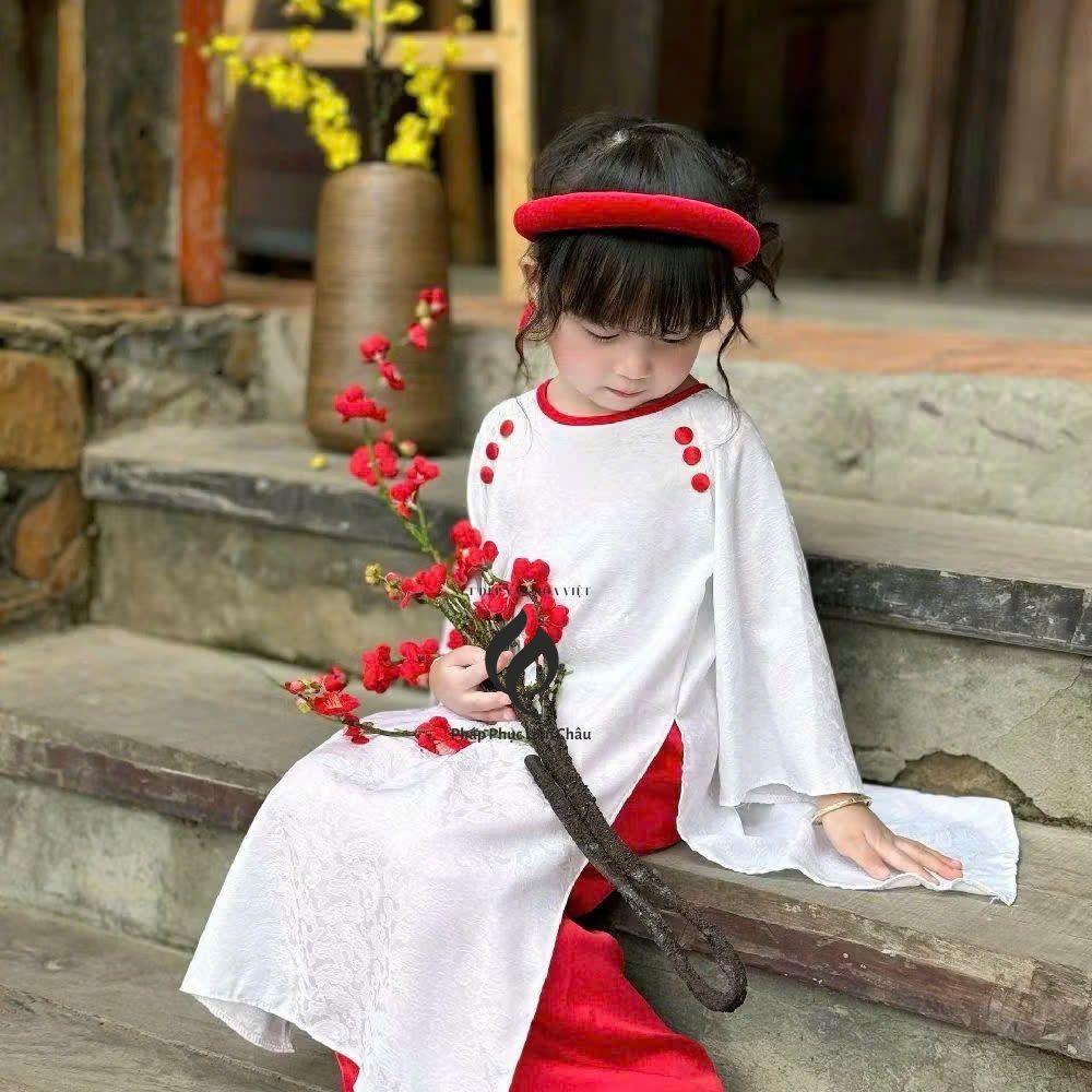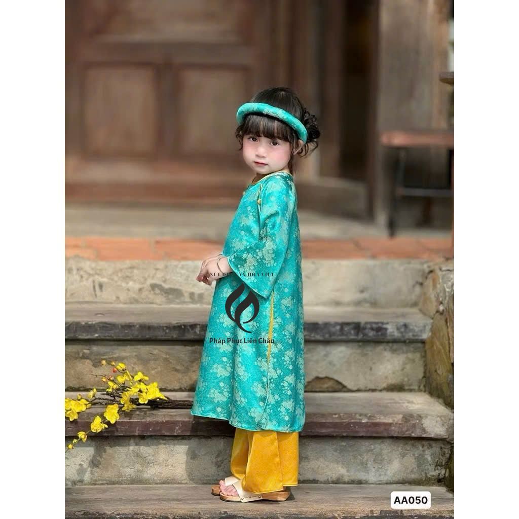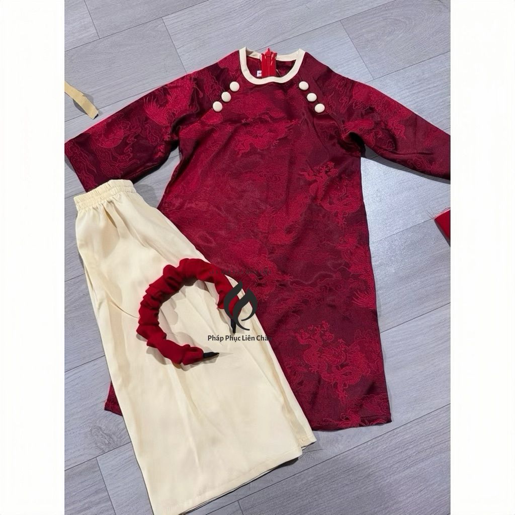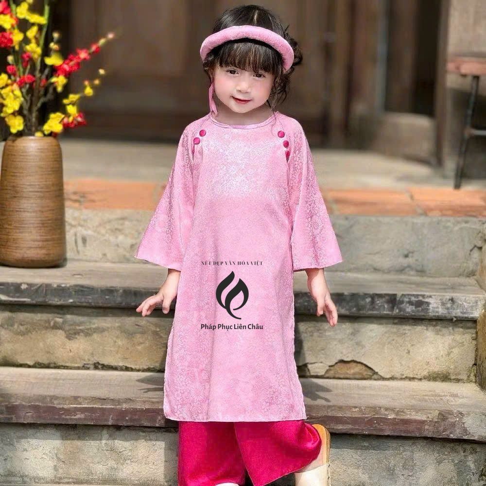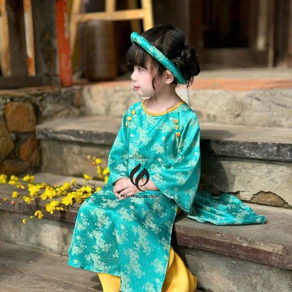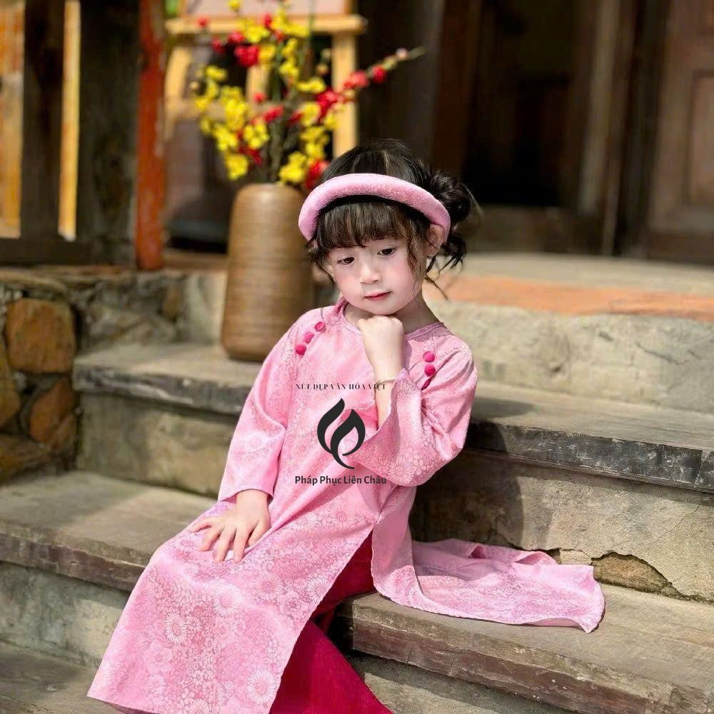 Set Áo Dài Tết Cho Bé Gái – An Nhiên – Áo Lụa Gấm 2 Da Mát Mẻ Mềm Mại, Quần Lụa Mango Tặng Kèm Mấn Xinh – Áo Dài Sài Gòn