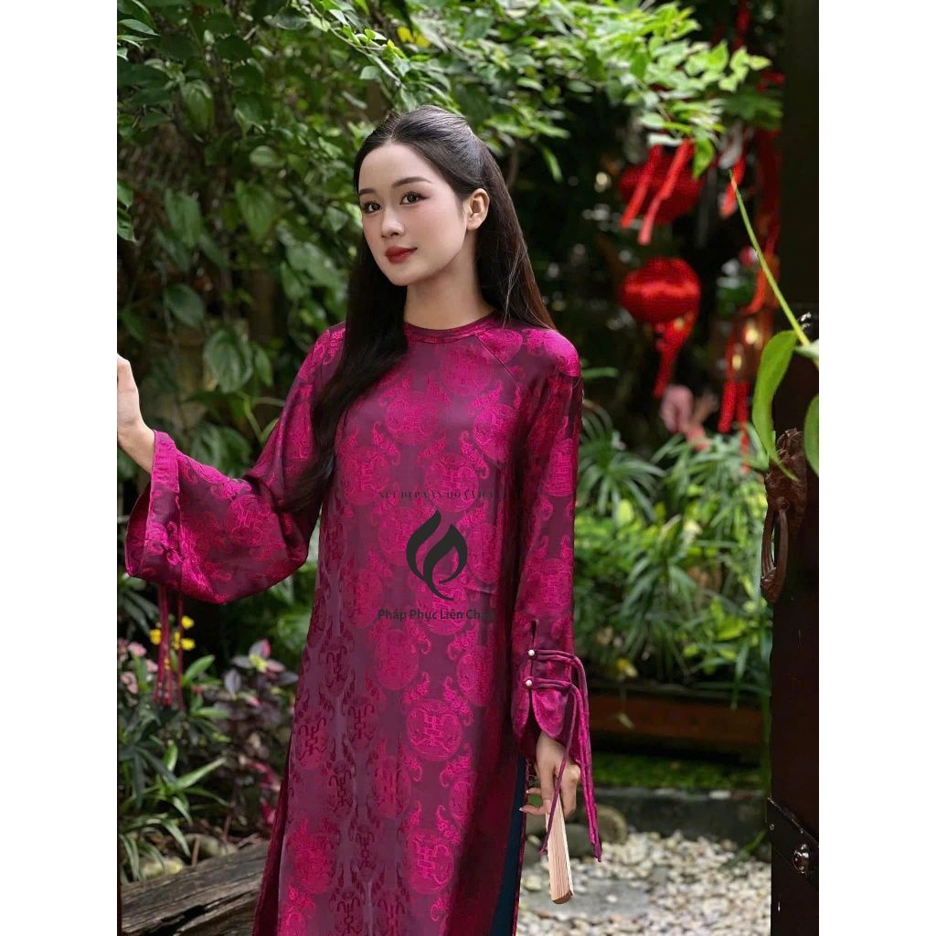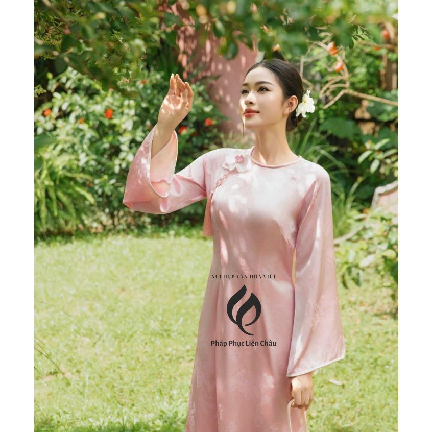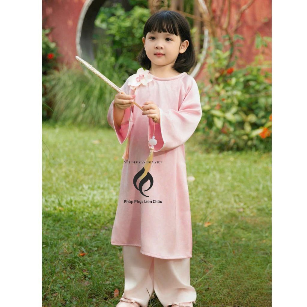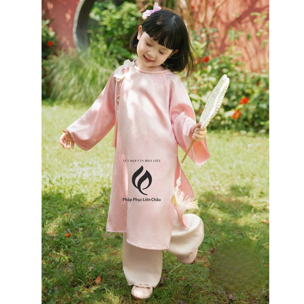 Set áo dài tết mẹ và bé gái An Khang với chất vải lụa vân châu mềm mại,áo hồng quần kem iu – Pháp Phục Liên Châu – Silk