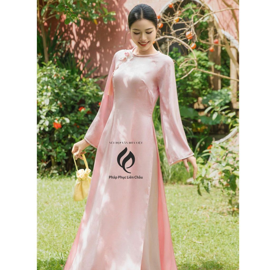 Set áo dài tết mẹ và bé gái An Khang với chất vải lụa vân châu mềm mại,áo hồng quần kem iu – Áo Dài Pháp Phục Sài Gòn