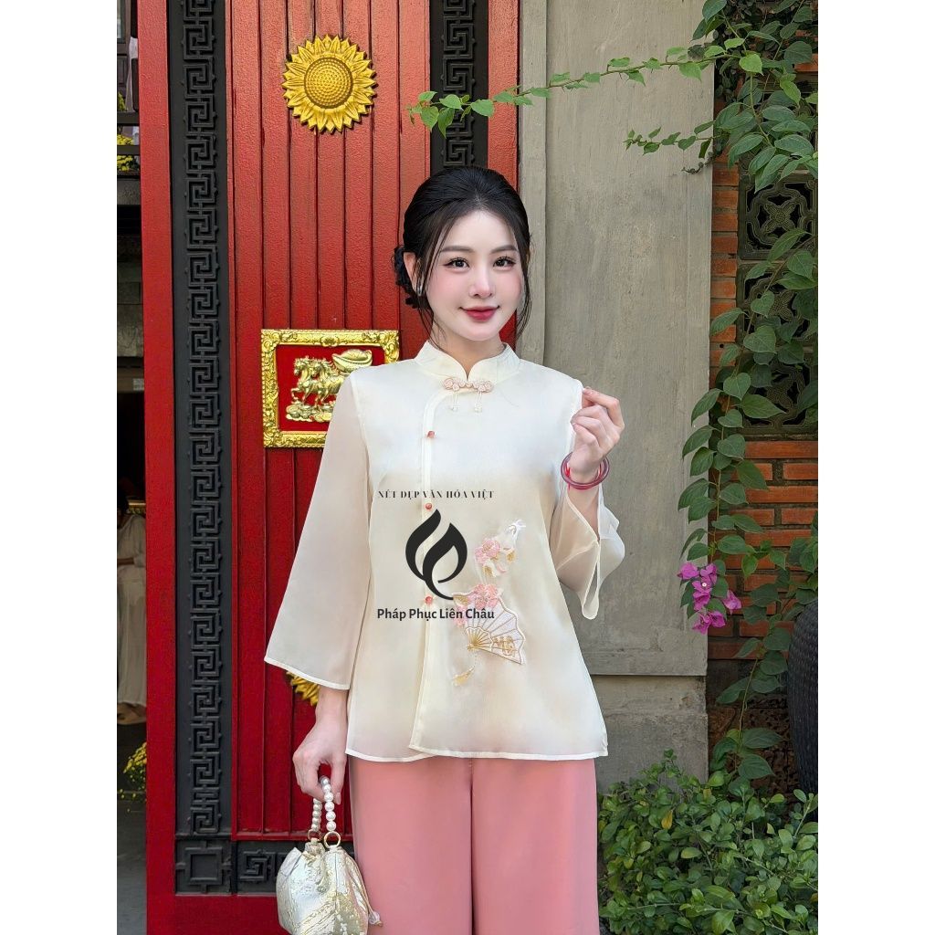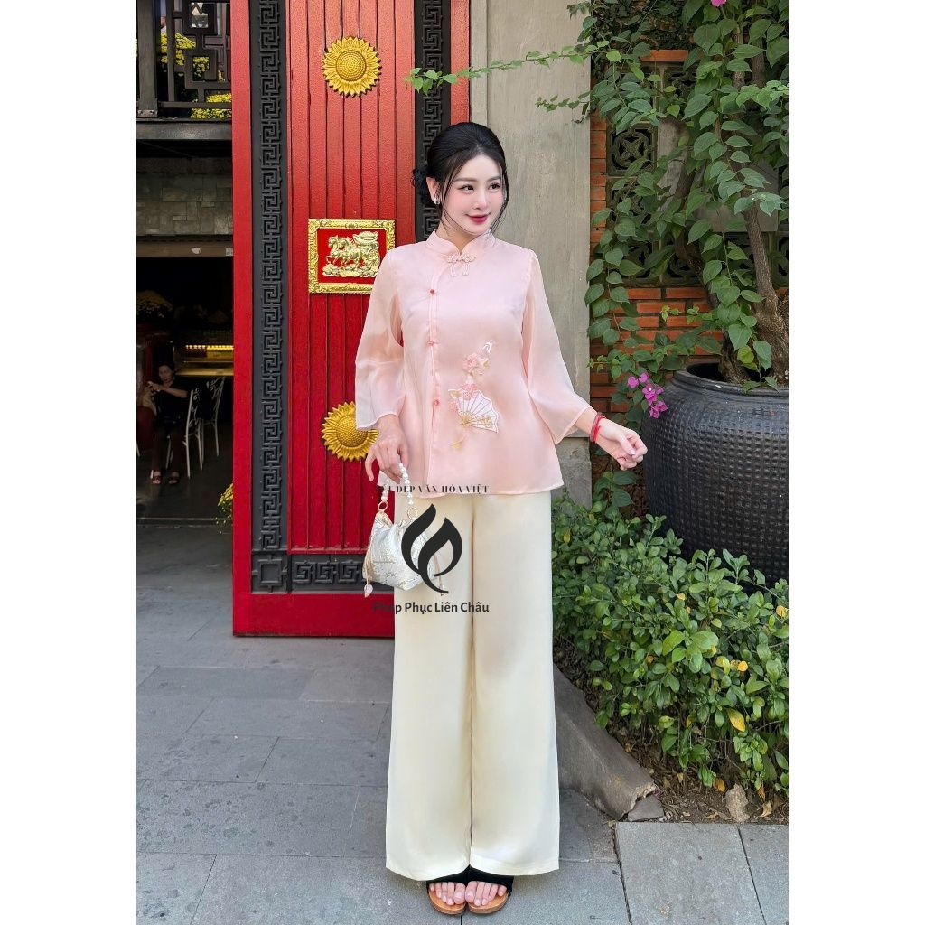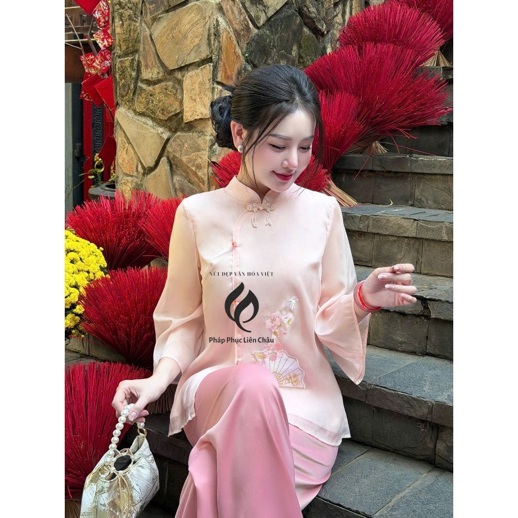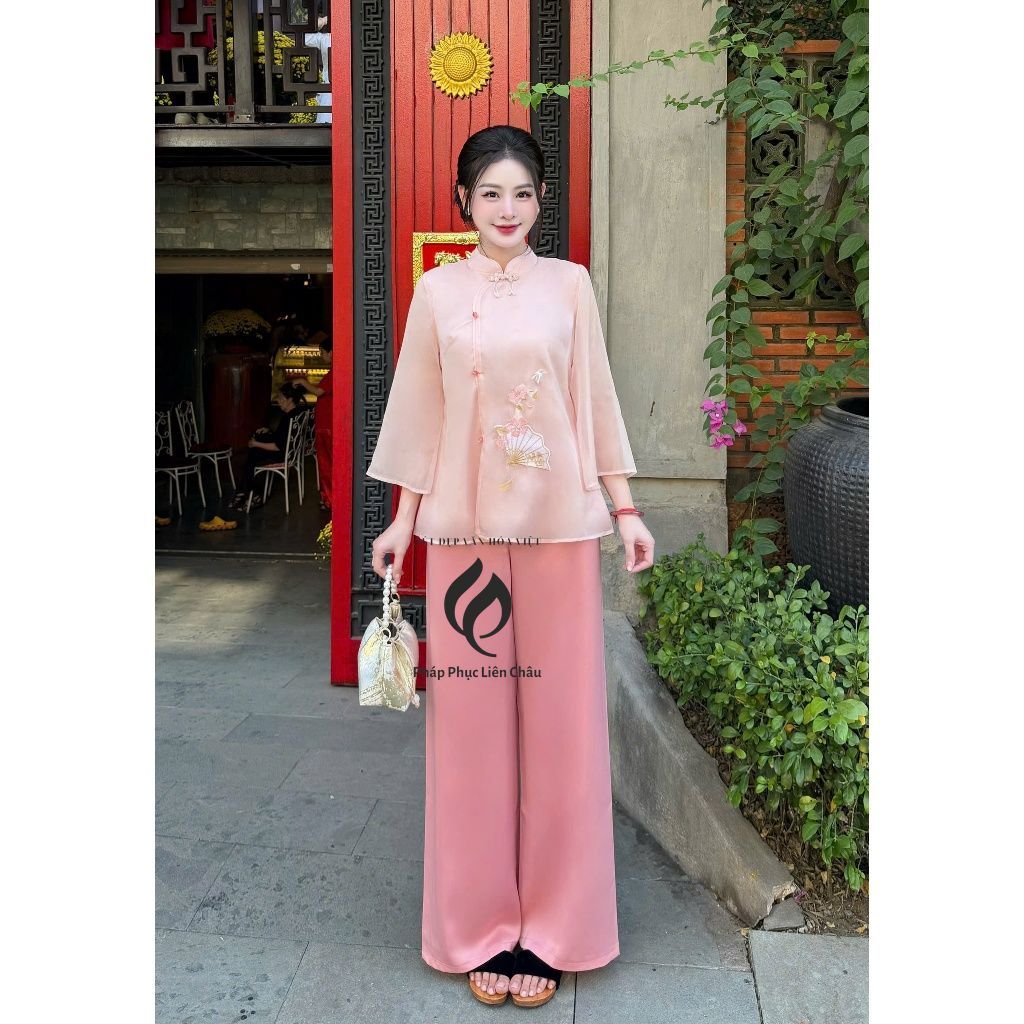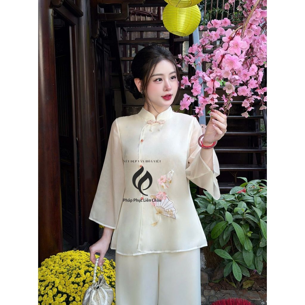 Set lam voan tơ họa tiết thêu hoa TINH NHI trẻ trung và tôn dáng PP422