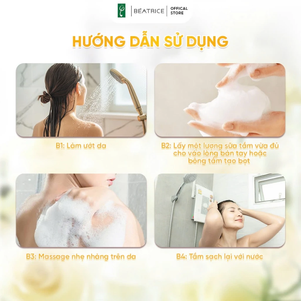 Sữa tắm Beatrice lưu hương nước hoa Trắng sáng rạng ngời 500ml