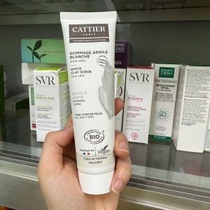 Tẩy Da Chết Cattier Gommage Argile Aloe Vera – thương hiệu dược mỹ phẩm lâu đời của Pháp được bày bán ở các cửa hàng Bio hữu cơ. Cattier Gommage Argile Aloe Vera scrub chứa đất sét trắng mềm mại giàu khoáng chất cùng với hạt scrub “mịn tơi” nhẹ nhàng tẩy tế bào chết dư thừa trên bề mặt giúp da sáng, mịn màng mà không đem lại cảm giác khô ráp sau khi tẩy da chết trên khuôn mặt. Đồng thời, tẩy tế bào chết 1-2 lần/tuần giúp bã nhờn tích tụ ở nang lông được “thanh tẩy” nhờ đó lỗ chân lông được thông thoáng, giảm thiểu mụn đầu đen, mụn cám và mụn đỏ.