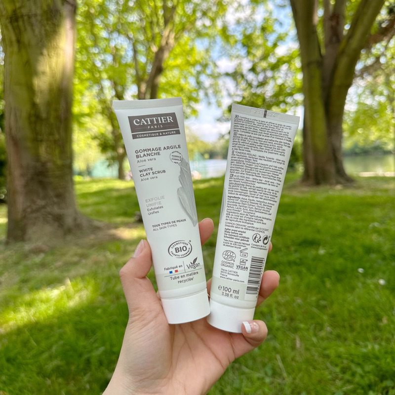 Tẩy Da Chết Cattier Gommage Argile Aloe Vera – thương hiệu dược mỹ phẩm lâu đời của Pháp được bày bán ở các cửa hàng Bio hữu cơ. Cattier Gommage Argile Aloe Vera scrub chứa đất sét trắng mềm mại giàu khoáng chất cùng với hạt scrub “mịn tơi” nhẹ nhàng tẩy tế bào chết dư thừa trên bề mặt giúp da sáng, mịn màng mà không đem lại cảm giác khô ráp sau khi tẩy da chết trên khuôn mặt. Đồng thời, tẩy tế bào chết 1-2 lần/tuần giúp bã nhờn tích tụ ở nang lông được “thanh tẩy” nhờ đó lỗ chân lông được thông thoáng, giảm thiểu mụn đầu đen, mụn cám và mụn đỏ.