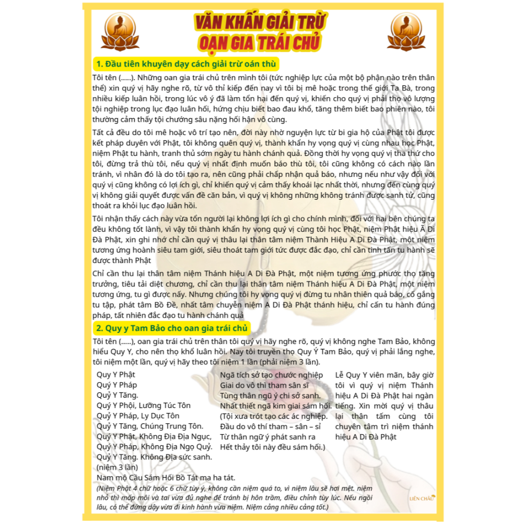 Tờ chú Văn Khấn Giải Trừ Oan Gia Trái Chủ 2 mặt ép plastic siêu đẹp