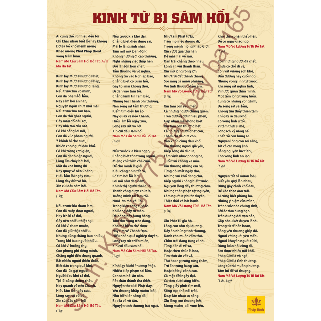 Tờ Kinh Từ Bi Sám Hối và Bài Sám Hối Nên Đọc Trước Khi Ngủ, Cán ni lông, chống nước, Khổ A4