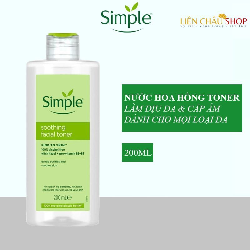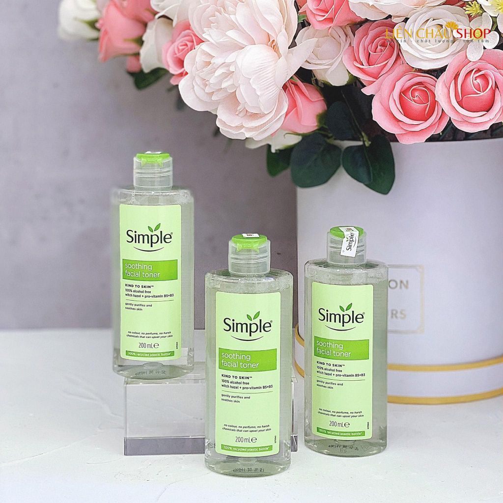 Nước Hoa Hồng Simple Kind to Skin Soothing Facial Toner đến từ thương hiệu chăm sóc da Simple xuất xứ Anh Quốc là sản phẩm Toner không chứa cồn được thiết kế phù hợp cho làn da nhạy cảm và dễ nổi mụn, giúp làm sạch sâu và cân bằng độ pH, cung cấp độ ẩm dịu nhẹ cho làn da, mang lại cảm giác tươi mát và sảng khoái sau khi sử dụng.